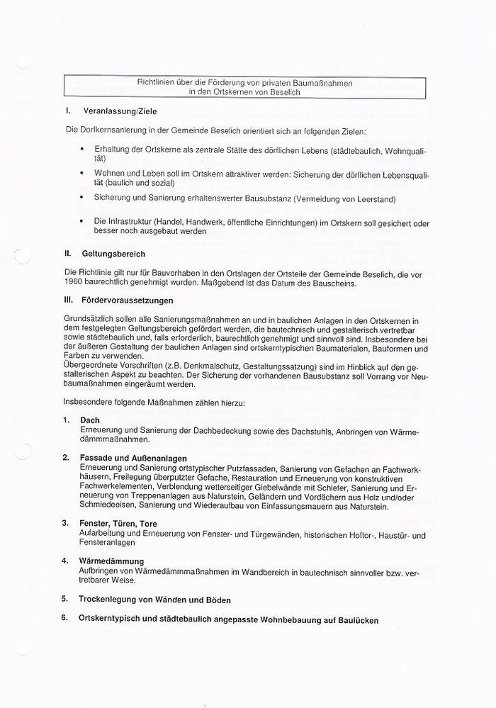 Im Zuge der Einführung der gesplitteten Abwassergebühr beantragte die SPD Fraktion, in die "Richtlinie über die Förderung von privaten Baumaßnahmen in den Ortskernen von Beselich" künftig auch Maßnahmen zur Entsiegelung von Flächen zu fördern. Damit werden künftig diese mit bis zu 20% der förderfähigen Kosten mit einem maximalen Betrag von 20.000 €, bei einer Mindestinvestitionssumme von 20.000 € gefördert. Informationen zur den genauen Regularien wie zu den anderen Förderungsfähigen Kriteren erhalten Sie bei der Gemeindeverwaltung unter Tel. 06484-91230 oder unter www.beselich.de.