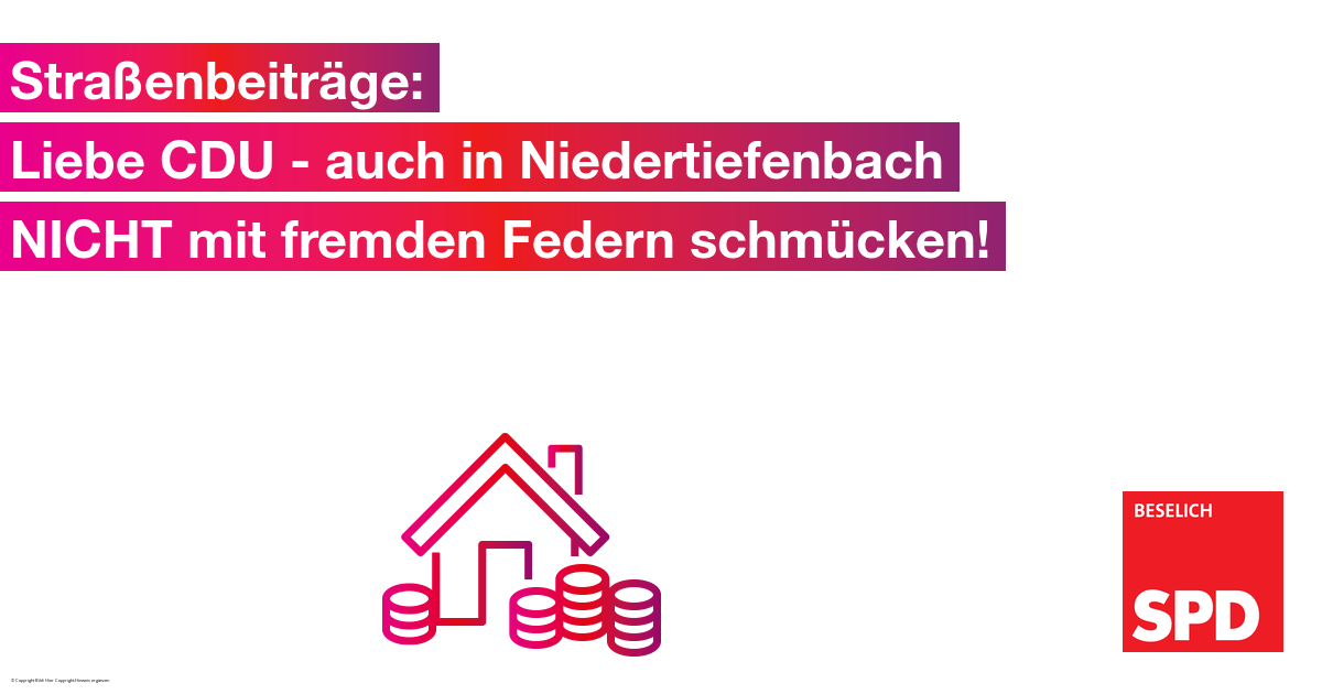Zur Vorgeschichte: Wir hatten die Diskussion um die Straßenbeiträge seinerzeit ins Parlament getragen und hierzu als erste Fraktion einen Antrag gestellt. Aus unserer Initiative heraus hat sich die Abschaffung der Straßenbeiträge entwickelt, welche die SPD von anbeginn an unterstützt hat. Wir haben mit dafür gesorgt das Beselich als eine der ersten Kommunen im Landkreis - auch gegen den anfänglichen politischen Widerstand der CDU und des Bürgermeisters - die Straßenbeiträge zum Zweitausbau zum 01.01.2019 abgeschaft hat. Zudem haben wir immer die Rückzahlung der bereits gezahlten Beiträge für die Anlieger der Hahlbergstraße gefordert. Als bereits klar war, dass dies nur über eine Klage machbar ist, forderte die CDU noch ein zusätzliches, teures - sinnloses - Rechtsgutachten. Am Ende stimmte dann auch die CDU für die Abschaffung und und die Klage - aber so wird gemunkelt - wohl eher um nicht überstimmt zu werden.