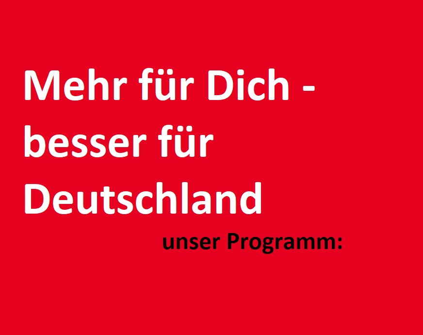 Hier geht es zum Programm der SPD für die kommenden Jahre. Mehr für Dich - mehr für Deutschland!