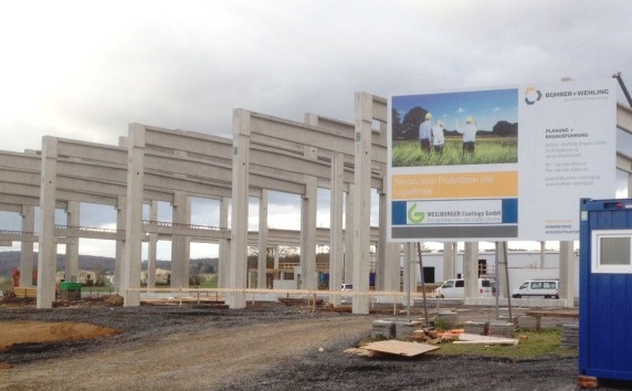 Der Rohbau. Der Neubau der Produktions- und Lagerhalle der Weilburger Coatings im „Beselicher Investzentrum“ nimmt Form an. Nach den Planungen soll im "Beselicher Investzentrum" ein sogenannter Backup‐Standort für die Weilburg Coatings GmbH entstehen. Auf einer Fläche von ca. 4 Hektar, plus 2 Hektar Option, baut die Grebe Gruppe einen Produktions- und Lagerstandort für umweltfreundliche Lacksysteme. Im ersten Bauabschnitt soll eine etwa 5.000 ‐ 7.000 Quadratmeter große Produktionshalle errichtet werden.