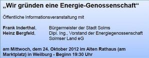 Die Energiewende in Deutschland ist eines der großen Themen dieser Zeit. Viele reden mit, doch nur wenige Menschen sind informiert. Dabei geht es nicht nur um den Einsatz von „Erneuerbaren Energien“ als Ersatz für den Atomstrom. Es geht auch um eine regionale Energieerzeugung, damit die Erträge bei uns zu Arbeitsplätzen und Einkommen führen.